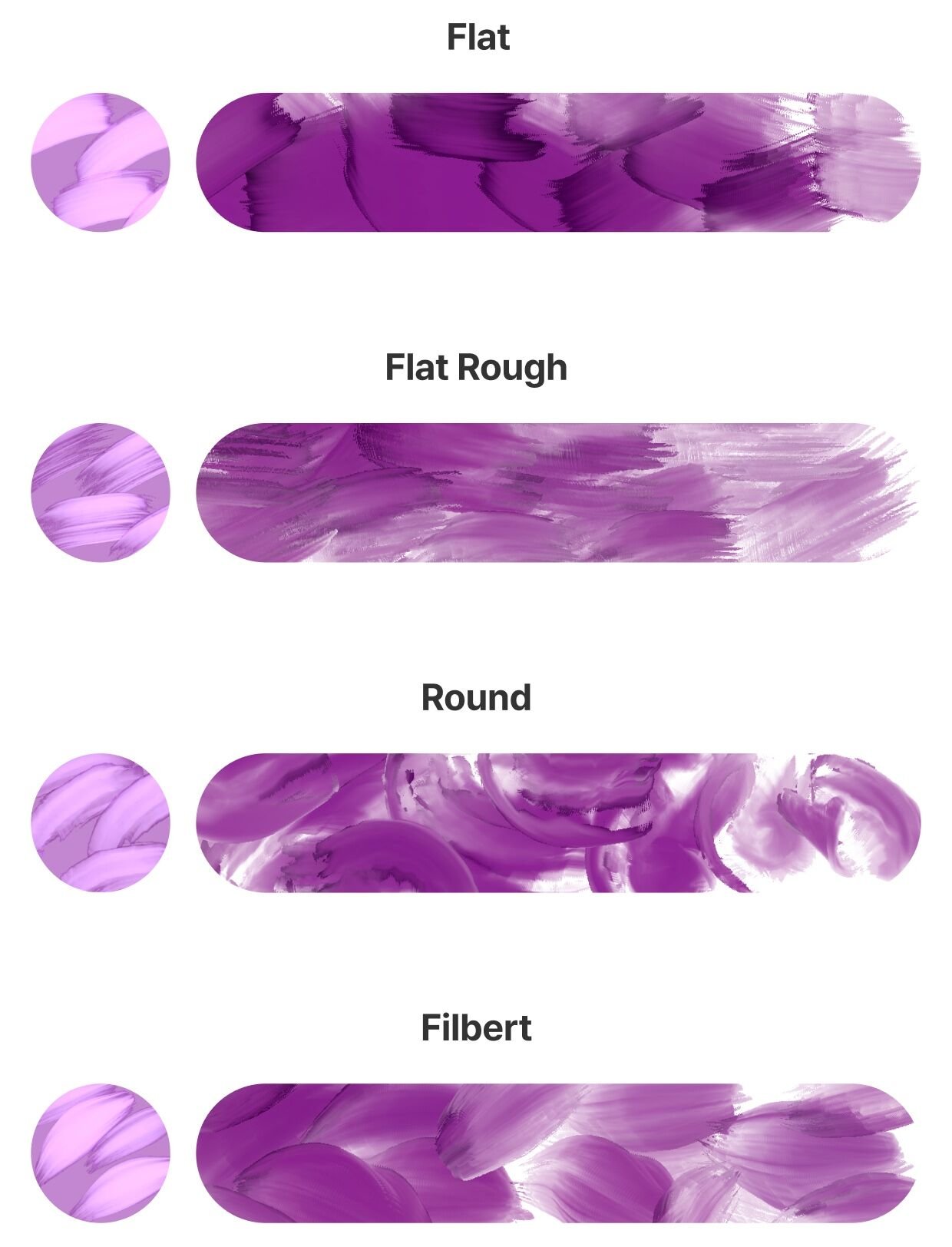 Traditionally used for curves and fine details, this brush has been reimagined for the iPad to create smooth, gentle strokes. Perfect for covering soft, broad areas with ease.