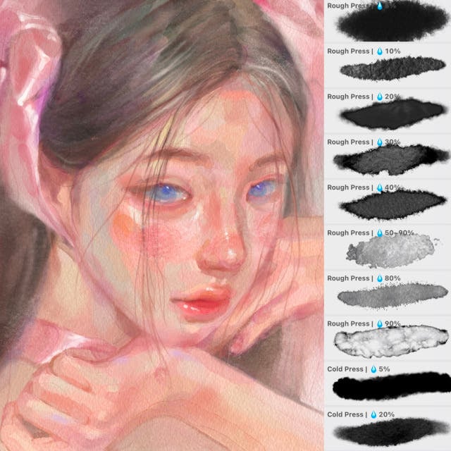 These brushes are designed to capture everything from rough to hot press, and even traditional Hanji silk textures, allowing you to create works with an authentic Asian painting style.