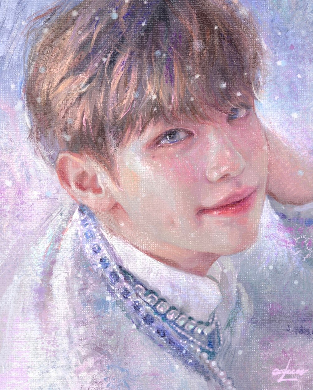 Not only the role of the brush but also the texture of the canvas and the shiny varnish (coating) must be applied to achieve a more realistic oil painting feel.